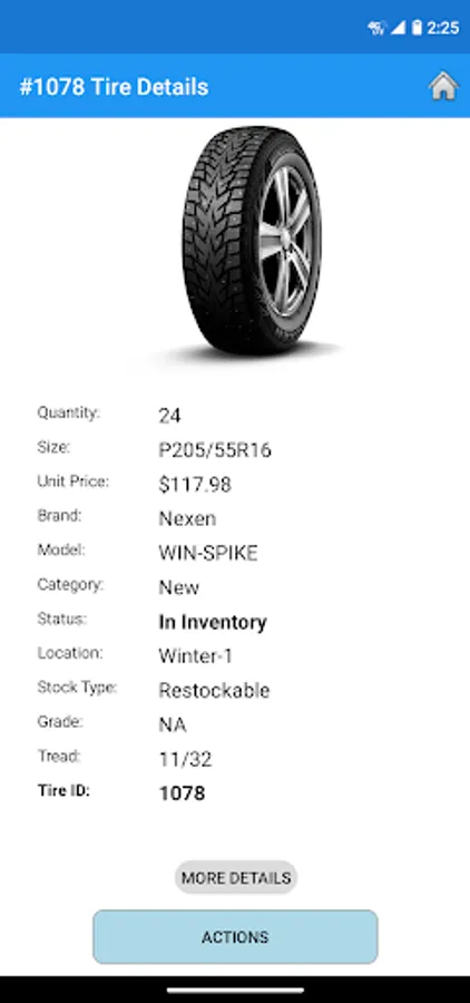 Easily add tires to inventory with a variety of details to capture and locate inventory with accuracy.