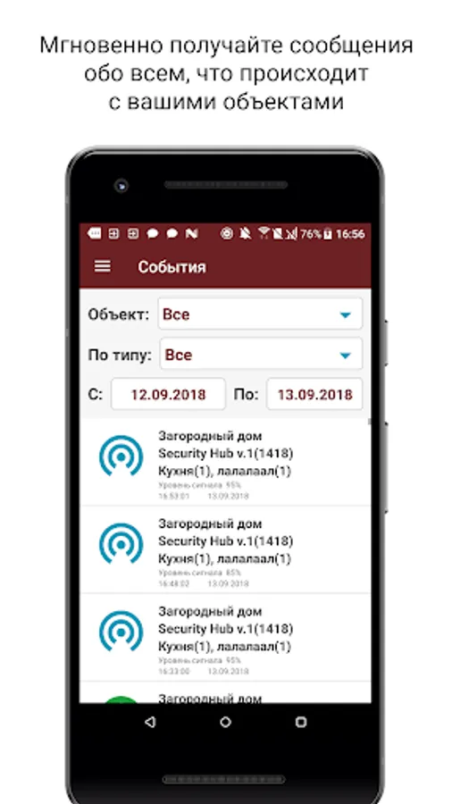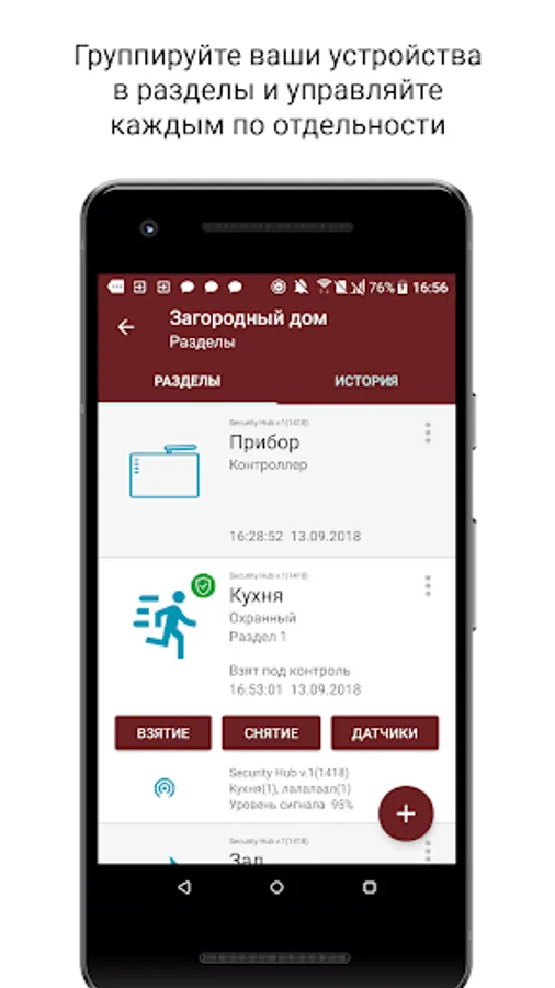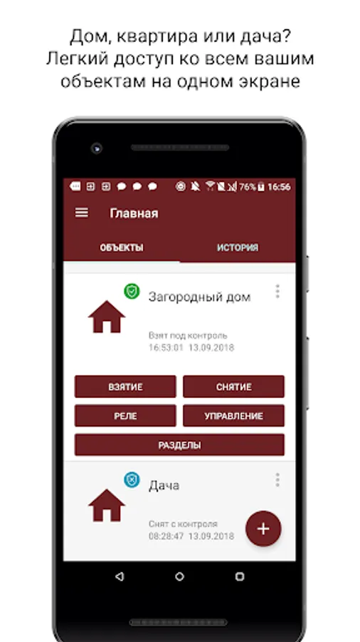 The application for Android-devices provides continuous monitoring of the protected premises. You are at home, even when not at home.