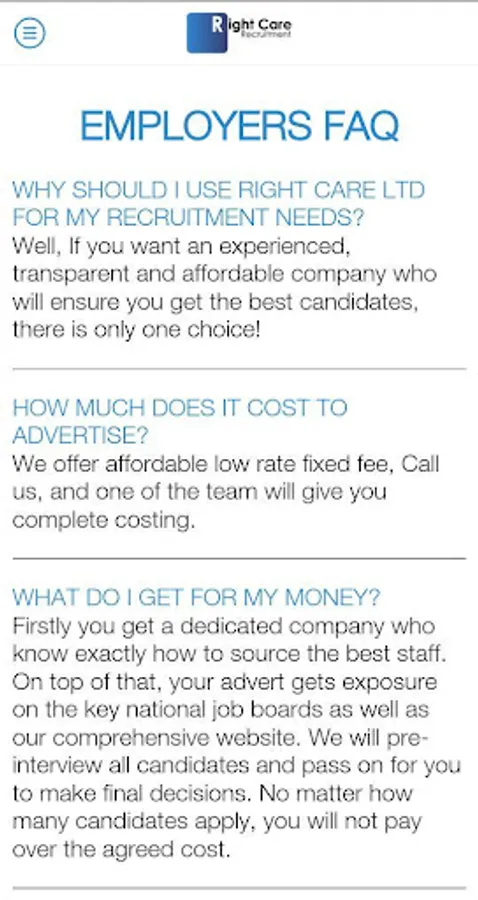 Right Care Recruitment offers a bespoke service for employers and employees. Employers can take advantage of our fixed fee permanent recruitment package or even browse the large selection of our trained temporary staff. If you are in search of employment, then why not use our members feature to ensure your application gets seen by local care providers in your area. Whatever your needs are, Right Care Recruitment will ensure your needs are met quickly and professionally.