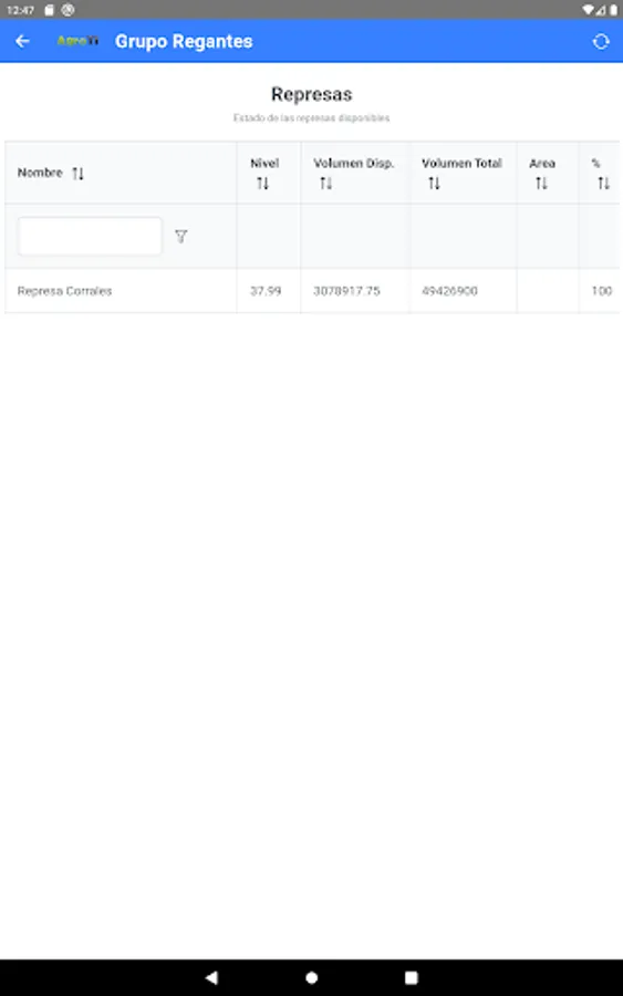 This application allows the monitoring and calculation of the water available for irrigation by the Irrigation Group.