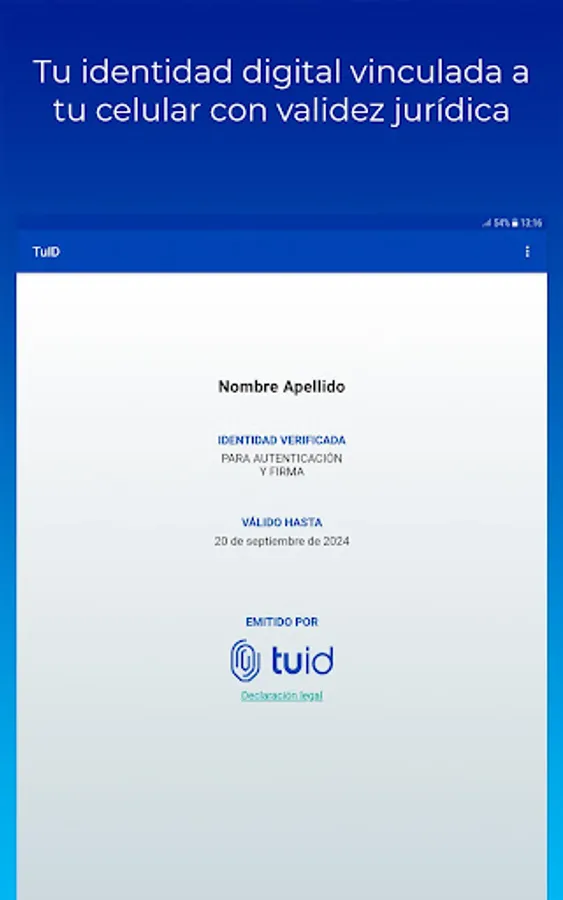 TuID Movil offers a secure and fast way of electronic identification for users of the TuID identification platform.