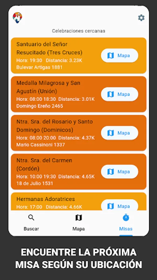 * Find the celebration of the Eucharist (Mass) closest to your position (GPS).
