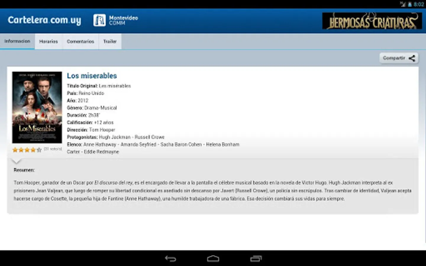 Cartelera.com.uy, the entertainment portal specializing in Uruguay bring your mobile devices shows all information, complete and constantly updated.