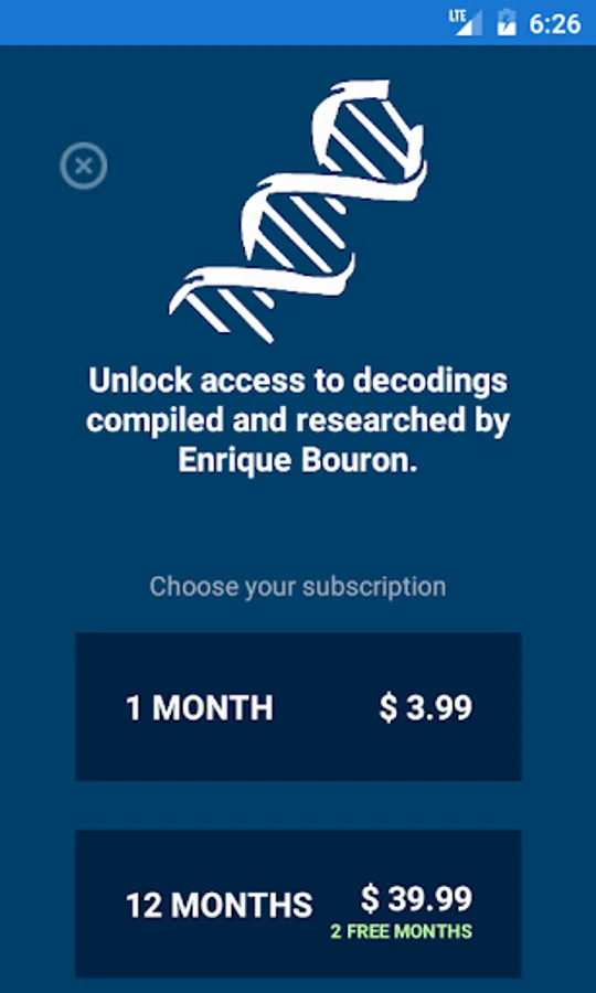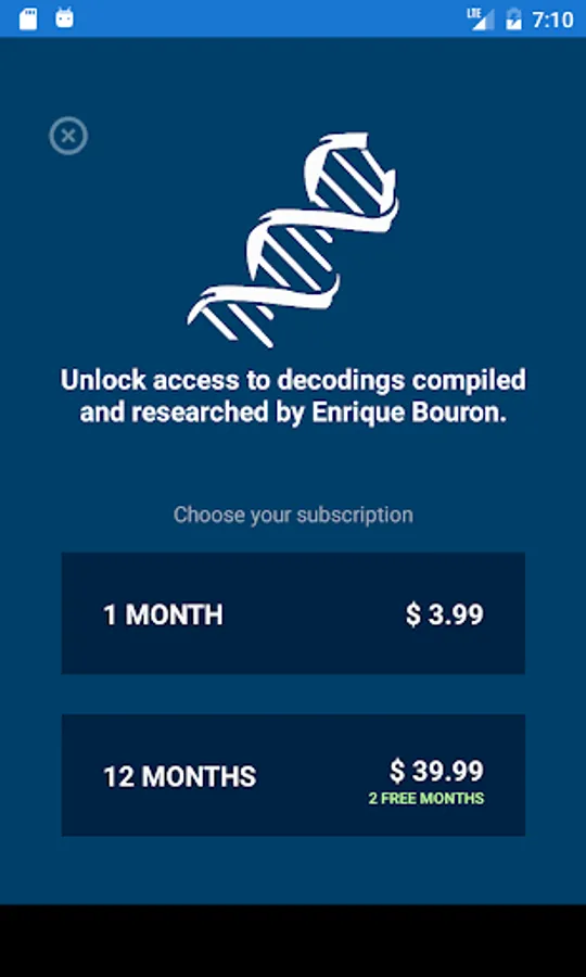 To make an in-app purchase of Biological Decoding subscription, open the app. In the decoding details tap GET YOUR SUBSCRIPTION. Subscriptions begin at from $3.99 a month in the US, and can vary by region. With a Biological Decoding subscription you have access to all conflicts associated with behaviors and diseases as well as the conflicting meaning related to each organ and system of the body.