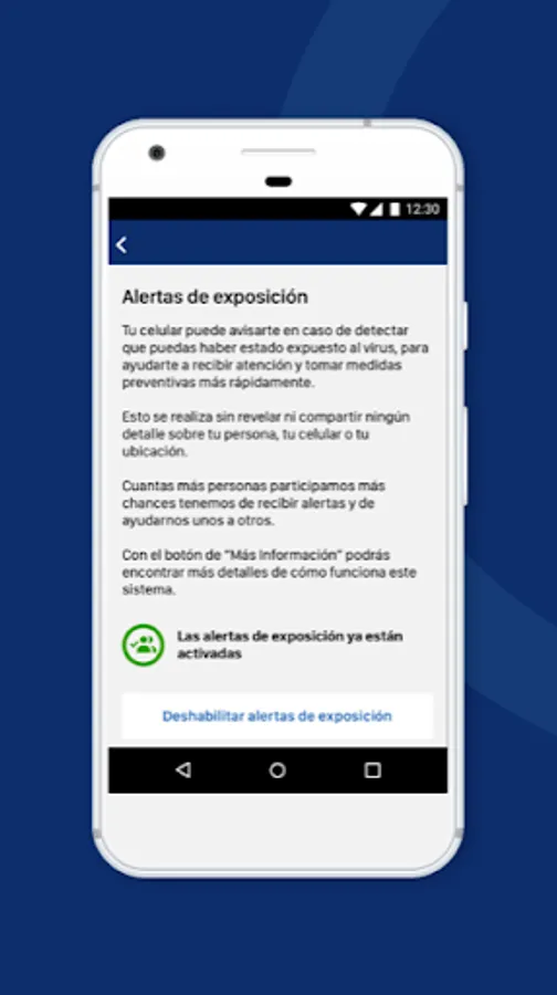 By activating the Exposure Alerts, your phone will be able to notify you if it detects a possible exposure to the virus, so that you receive advice, follow-up and attention as quickly as possible.