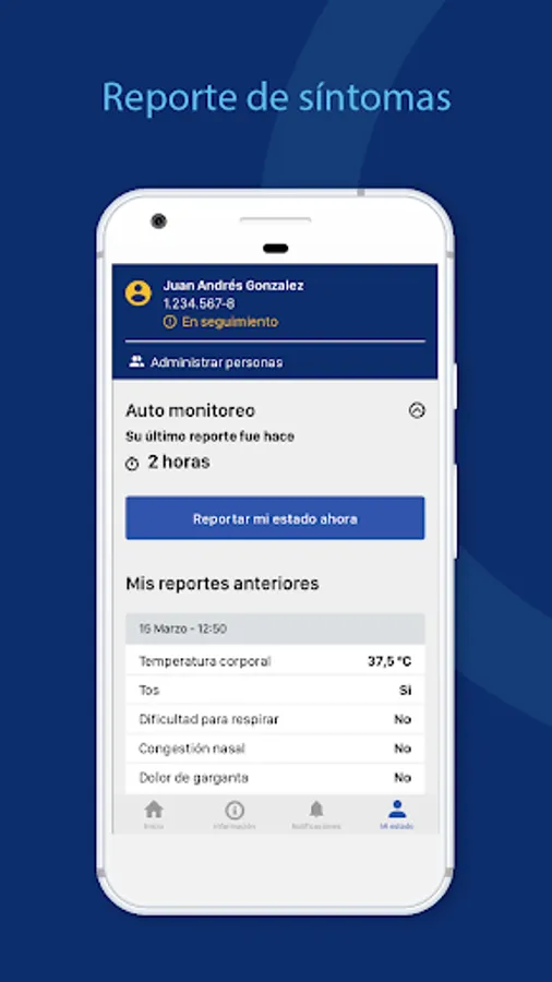 In the event of contracting the disease, the application will allow you to inform your doctor about your health status (for example fever or other symptoms) on a daily basis. That way they can keep up with your health, tell you the best way to take care of yourself, and even contact you through video calls.