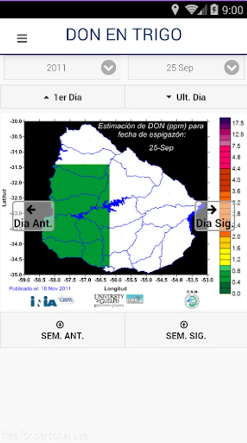 SIGRAS App is an application developed by the Unit Agroclimate and Information Systems (GRAS) of the National Agricultural Research Institute (INIA) of Uruguay. It is based on SIGRAS (http://sig.inia.org.uy/sigras/) which is a GIS web. This application provides current information about variables of water balance in the soil and vegetation conditions, statistical information on climate, water balance and NDVI, soil and general information and basic cartography. This information is referenced location or a selected place. Complementary tools available forecasts and alerts as Don in wheat, frost and rain forecasts made by CPTEC of Brazil and a system for personalized estimate soil water (CuantAgua).