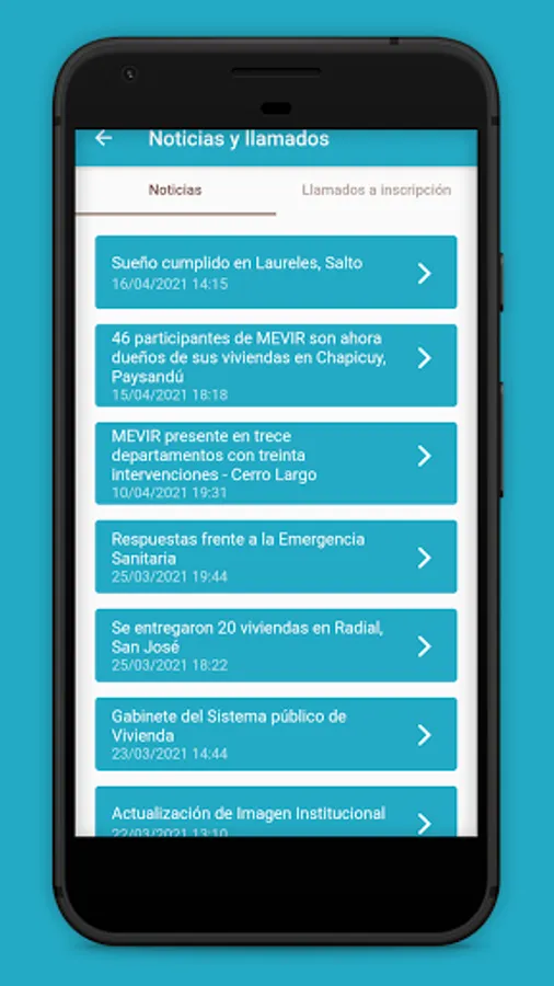 Mevir Mobile Application that allows the participant to access basic services provided by the Institution.