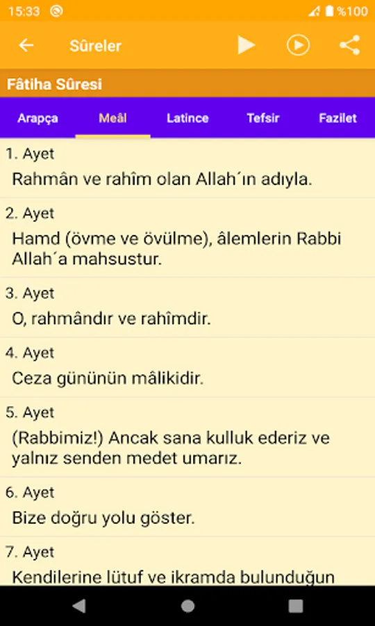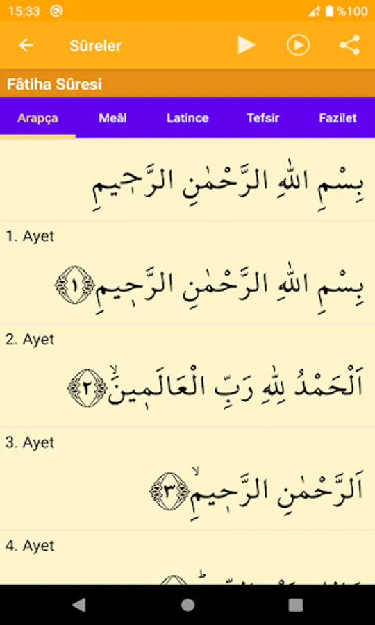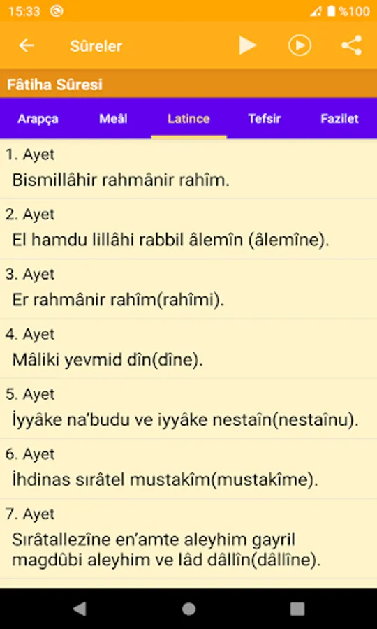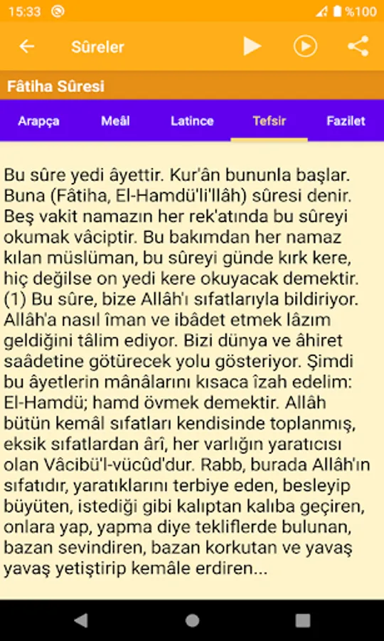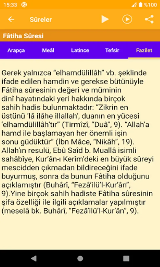 a) Rest, Latin, Turkish, Tafsir, Virtue and Arabic
