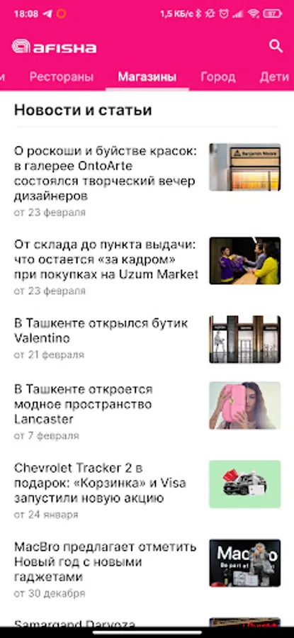 Afisha.uz 3.0 is an application with a schedule of all events and premieres in Tashkent in an updated format. Large reference catalog, daily announcements, news and reviews. Choose where to go and what to see: