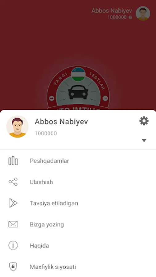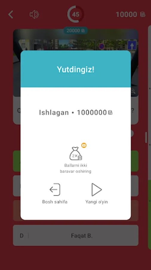 🇺🇿 Haydovchilik guvohnomasi imtihonining savollari bilan Millioner Viktorinasi. Viktorinada o'zbek tilida turli mavzularda ko'plab savollar mavjud. Rasmiy biletlar o'zbek tilida.