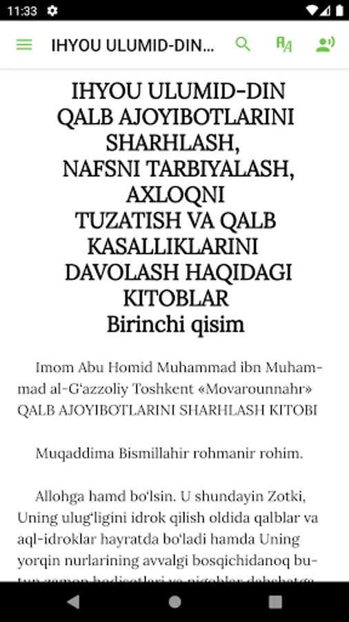 Allohga hamd bo'lsin. U shundayin Zotki, Uning ulug'ligini idrok qilish oldida qalblar va aql-idroklar hayratda bo'ladi hamda Uning yorqin nurlarining avvalgi bosqichidanoq butun zamon hodisotlari va nigohlar dahshatga tushadi. U shundayin Zotki, sirlar berkitilgan joylardan xabardor va qalb ichiga yashirilgan narsalarni biluvchi hamda O'zining mulklari doirasida maslahatlashishdan va fikr almashishdan behojatdir. U qalblarni o'zgartiruvchi, gunohlarni kechuvchi, ayblarni berkituvchi va qayg'ularni aritib yuboruvchi Zotdir. Rasullar sayyidi, din shomilligining jamlovchisi va mulhidlar ortini kesuvchi Payg'ambarga hamda u zotning toyyib va tohir oli-ashobiga ko'plab salovot va salomlar bo'lsin.