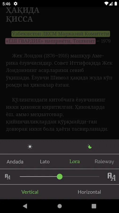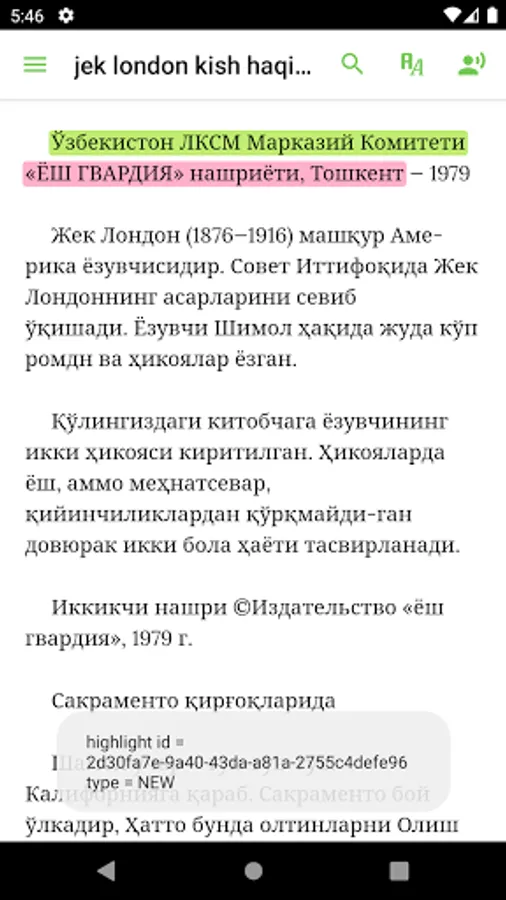 jek london ham muhabbat haqida talay hiqoya, qissa, romanlar yozgan va ular kitobxonlar tomonidan katta qizikish bilan mutolaa ailib kelinmokda. Bu asarlarda sevgining sexr va kuvonchlari, iztirob va armonlari goyat hayotiy, ta'sirchan aks etgan.Bu daryoni vujudga keltirgan o'z osmonlari, kor-yomgirlari, uz toglari, buloklari, arvonchli. Bu daryo - undan paydo buluvchi yangi-yangi soylar, shux-sha'n va dilbar ariqlar ko'zni kuvontiradi. Kungilni yayratadi, xayot va odamlar xakida kechagiga Karaganda chukurrok mushoxada yuritishga undaydi; kuchga-kuch ko'shadi, dala-tuzlarga, bogu bogchalarga obi rahmat olib qiradi