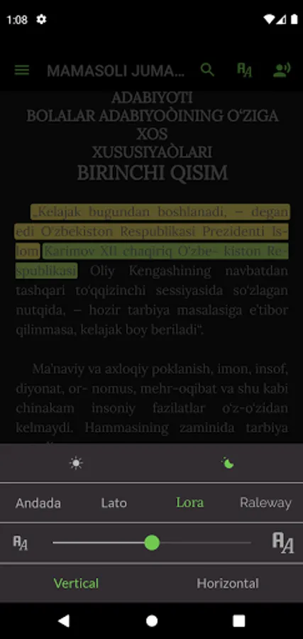 Yosh avlodga chinakam aqliy, axloqiy, estetik tarbiya berish, ularni mamlakatimizning munosib farzandlari qilib tarbiyalashdek ulug‘ maqsadni ko‘zlab yozilgan mazkur „Bolalar adabiyoti“kitobi kasb-hunar kollejlarining „Maktabgacha ta’lim“ bo‘limi o‘quvchilari uchun mo‘ljallangan bo‘lib, undan bolalar adabiyotiga qiziquvchi barcha kitobxonlar ham foydalanishlari mumkin.