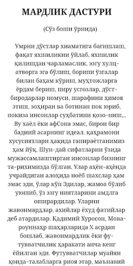Husayn Voiz Koshifiy. Xusayn Voiz Koshifi Sharqning mashhur allomalaridan biridir. U axloq, tarix, tasavvuf sohalariga doir 40 dan ortiq asar yaratgan. Ularning aksariyati 500 yil davomida axloq-odob dasturi sifatida qo'ldan-qo'lga o'tib, zo'r qiziqish bilan o'qib kelingan. Bag'oyat katta tarbiyaviy ahamiyatga molik bo'lgan uning ikki asari - "Futuvvatnomai sultoniy" va "Axloqi muhsiniy" so'nggi yillarda nashriyotimizda alohida - alohida chop etilgan edi