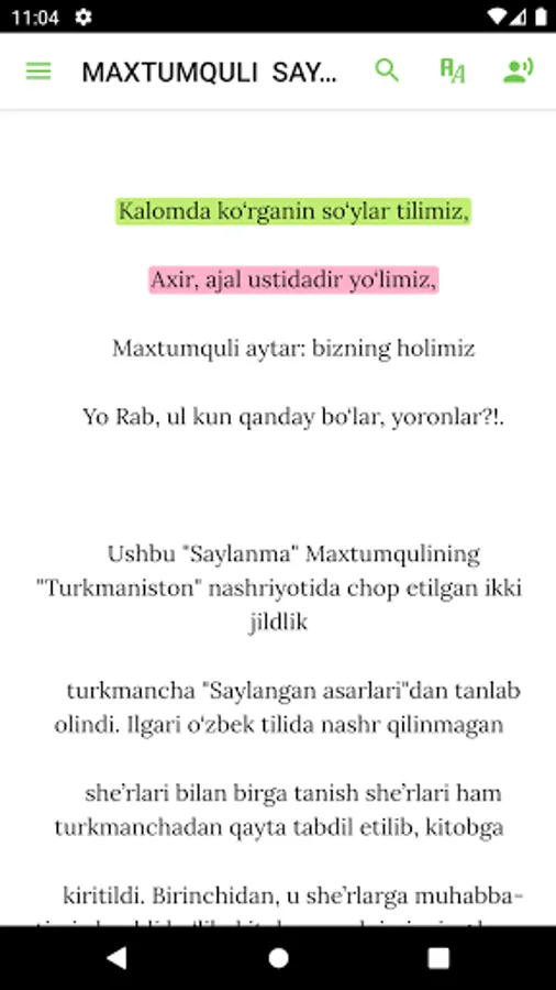 Ushbu "Saylanma" Maxtumqulining "Turkmaniston" nashriyotida chop etilgan ikki jildlik turkmancha "Saylangan asarlari" dan tanlab olingan. Ilgari o'zbek tilida nashr qilinmagan she'rlari bilan birga tanish she'rlari ham turkmanchadan qayta tabdil etilib, kitobga kiritildi. Birinchidan, u she'rlarga muhabbatimiz kuchli bo'lib, kitobxon xalqimizning ham ularga ehtiyoji bor. Ikkinchidan, u she'rlarning ba'zilaridan mustabid tuzum qolipiga sig'magan ayrim bandlar qisqartirilgan, ayrim so'z va iboralar esa o'zgartirilgan ediki, bunda ularni to'liq taqdim etmoqdamiz. Tarjimada ixtiyorsiz yo'l qo'yilgan nuqsonlar uchun kitobxondan uzr so'rab, to'plam xususida muhtaram o'quvchilarning fikr-mulohazalarini mamnuniyat bilan qabul etishga hozir ekanimizni bildiramiz. Ushbu kitob, shubhasiz, dunyo va oxirat mohiyatini anglashda insonga madadkor, ma'naviy oziq, ruhga quvvat, iymonga dalda bo'lgaydir. Maxtumquli - turkiy xalqlarning sayroqi tili, sahroning guli, gulning bulbuli, Haqning sodiq, oshiq va orif qulidir. Alloh muborak aylasin!