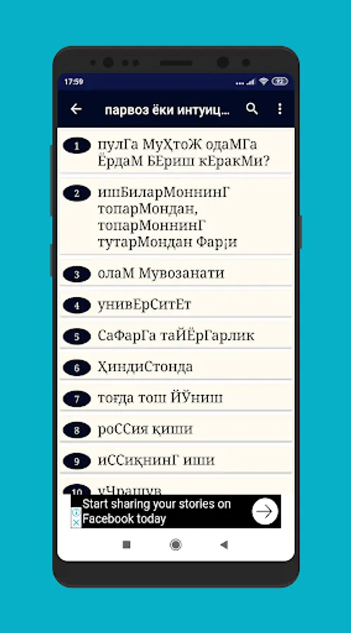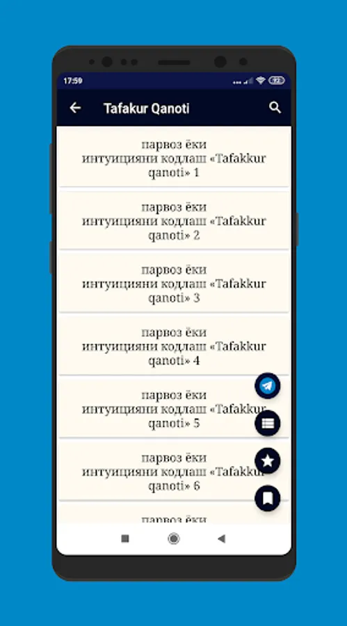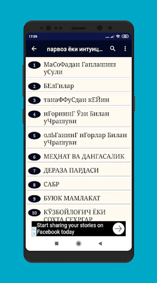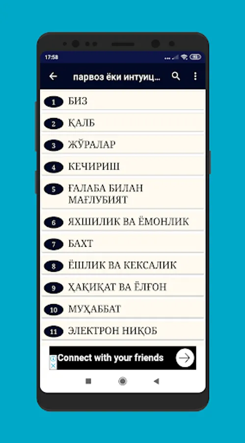 Elektron kitobimizning bir qsmidagi mavjud bo'lgan mavzular mundarijasi.