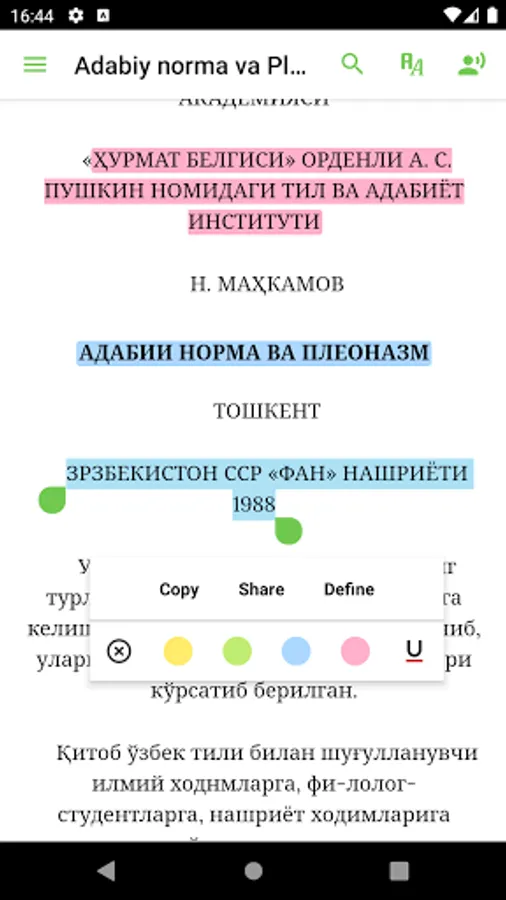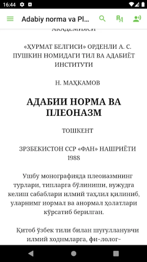 Adabiy norma va pleonazm Tildagi pleonazm hodisasi qonuniy va tabiiy ho-disadir. Pleonazm til ekonomiyasiga zid bo'lgan hodi-sa bo'lsa-da, ayni paytda, dialektik o'zaro bog'liqdir. Mazkur tema o'zbek tilida, asosan, birinchi marta o'r-gapilayotgan murakkab til jarayoni bo'lib, uning to'la hal etilishi o'zbek tili morfologiyasi, leksikologiyasi va stilistikasining muhil'rad masalalarini kitob.