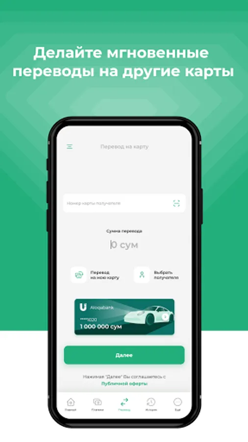 Make fast TRANSFERS TO CARDS of all banks in Uzbekistan. Just a couple of taps and your transfer has been successfully completed, with the lowest commission - 0.5%.