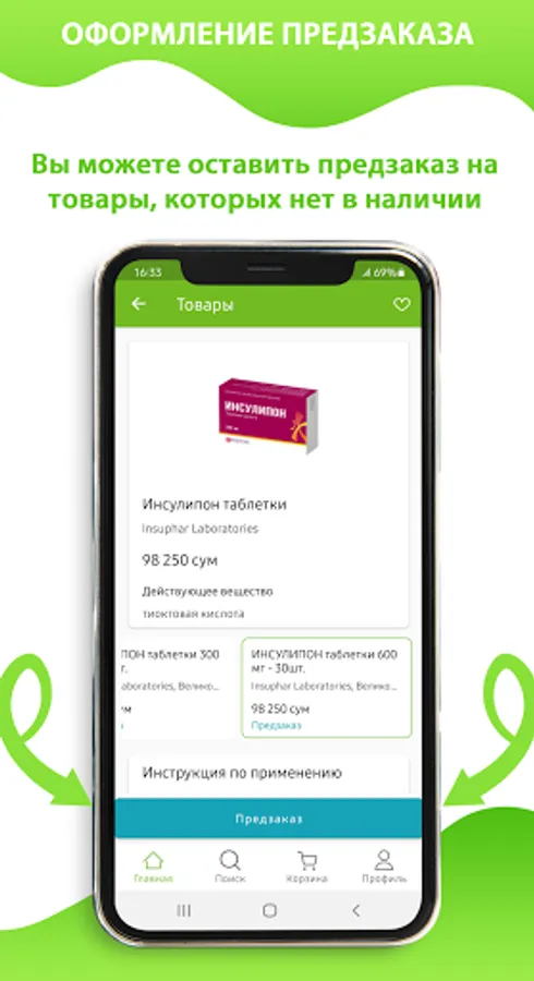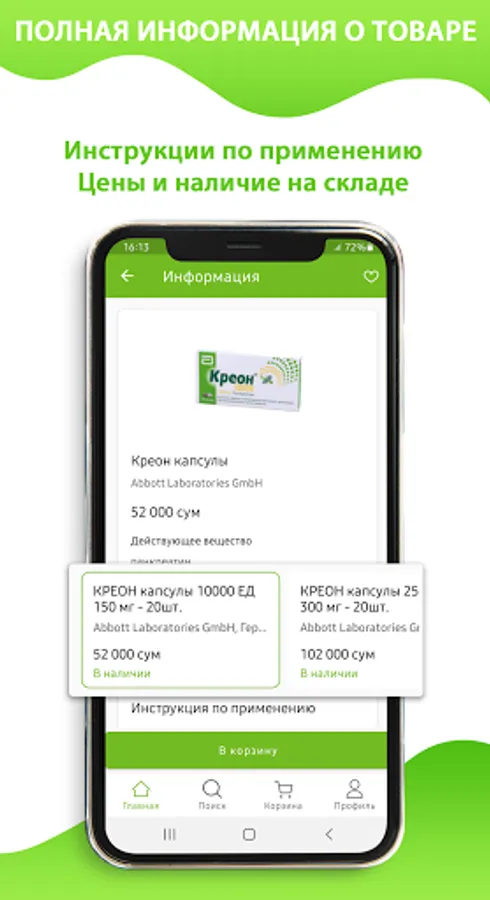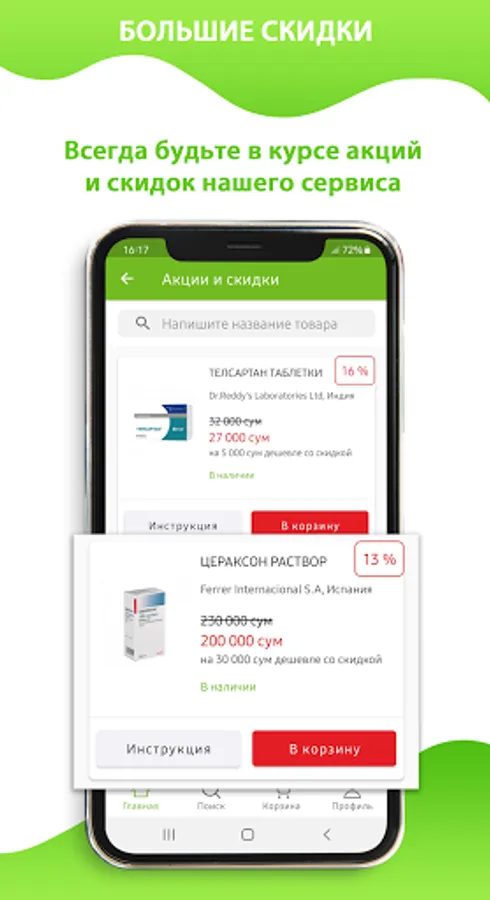 Our application is intended for those who manage their time wisely, are not used to spending extra money, appreciate quality and do not forget to monitor their health. From now on, you can view the composition and other information about the medicine, as well as order it, online and at a bargain price. Before ordering medicines, do not forget to consult with your doctor to find out about possible side effects and compatibility with drugs already taken!