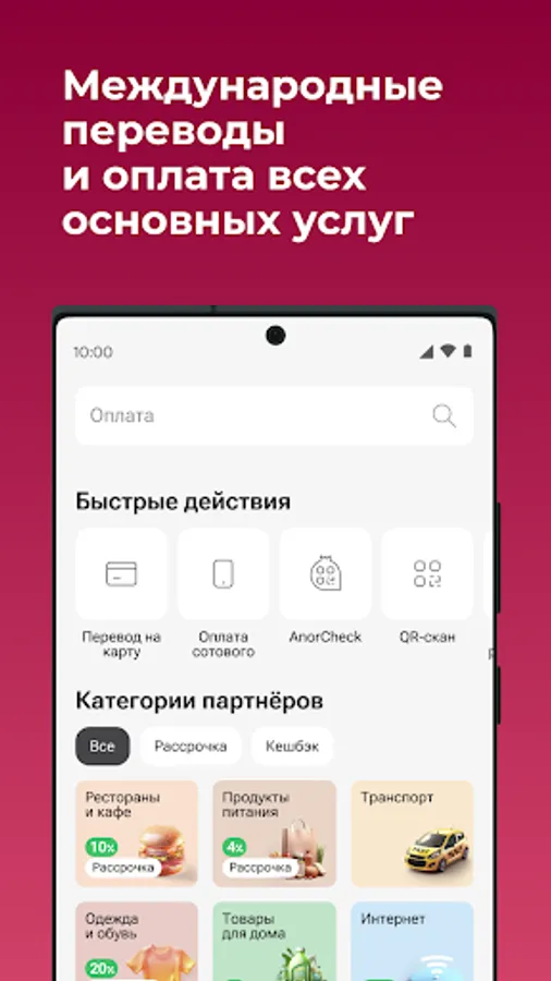 •Mobil va boshqa xizmatlarni to'lovini amalga oshirish