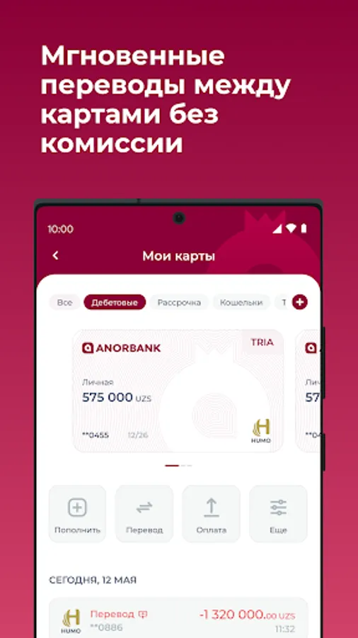 • Tinkoff kartalaridan TRIA Humoga pul o'tkazish