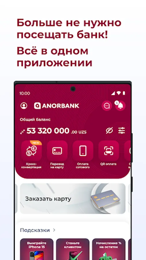 Sizda ajoyib fikr bormi yoki muammoga duch kelyapsizmi? O'z xohishlaringizni ilova ichida yoki ushbu pochtaga yuboring: info@anorbank.uz