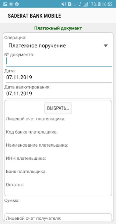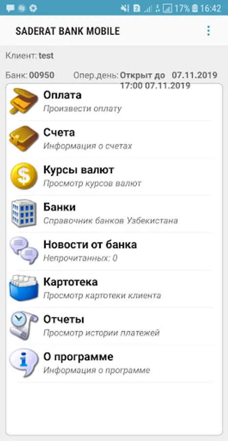 Приложение для юридических клиентов Sederat Bank Tashkent .