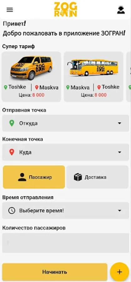 Mamlakatlararo taksi xizmati mijoz ilovasi