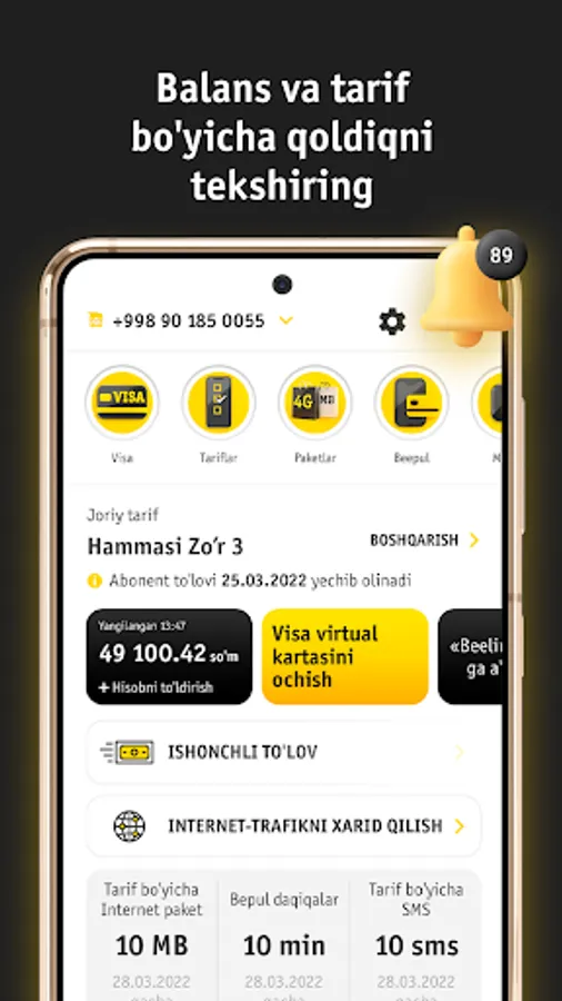 Smartfoningizda "Beeline Uzbekistan" mobil ilovasini o'rnating va raqamingizni boshqarish uchun oddiy va qulay vositaga ega bo'ling.