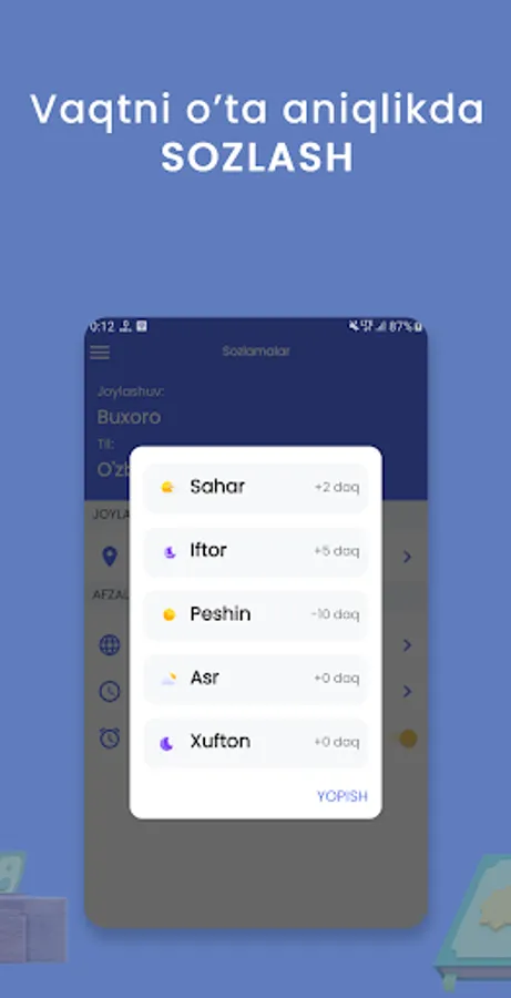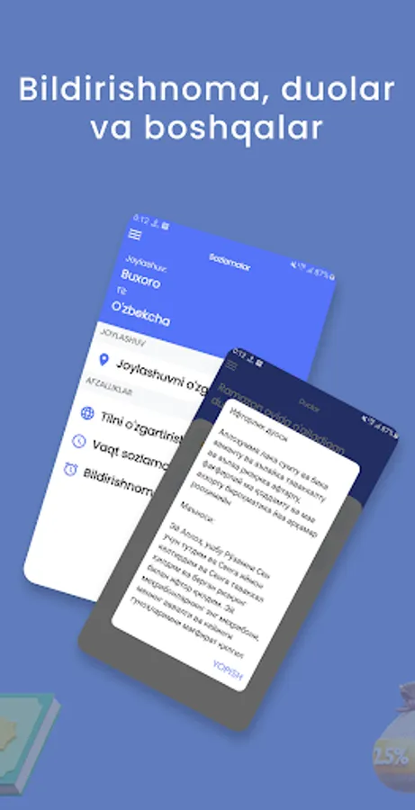 - Namoz vaqti kirganda budilnik bildirishnomasi va boshqa ajoyib qulayliklarga ega bo'ling.