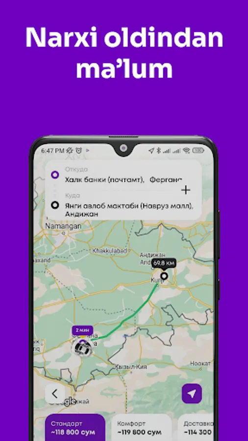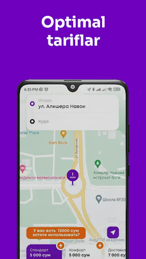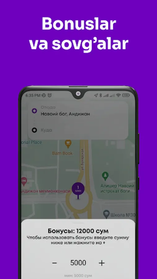 Taksini shaxsiy shahar transportingizga aylantiring. Mashina siz aytgan joyga yetib boradi va xohlagan joyingizga olib boradi - to'xtash yoki yonilg'i quyish shart emas. Dispetcherga qo'ng'iroqlar yo'q, buyurtma berilgan paytdan to safar oxirigacha safar haqida ma'lumotlarni kuzatib boring. Bonus taksi sizga har bir safaringiz uchun ko'plab bonuslar taqdim qiladi va yig'ilgan bonuslarni kelgusi safarlar uchun ishlatishingiz mumkun.