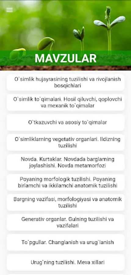 "Botanika" fanidan o'quv-uslubiy majmuaning ilovasi