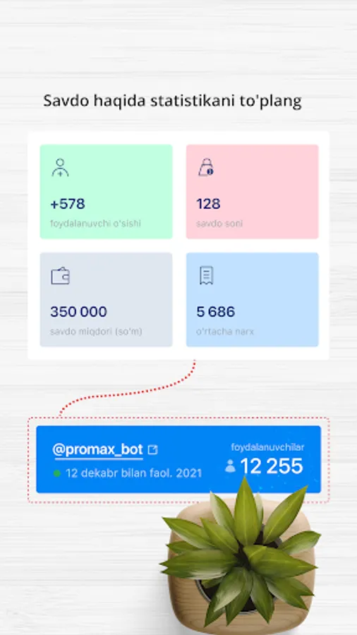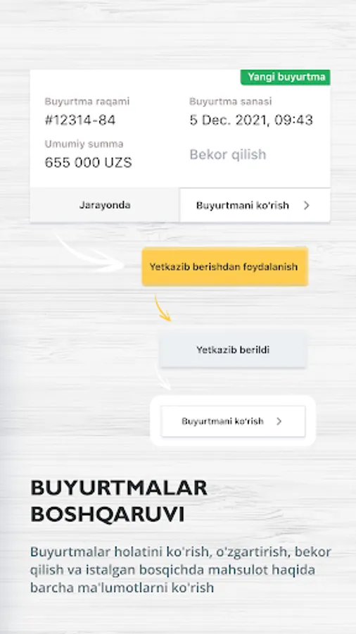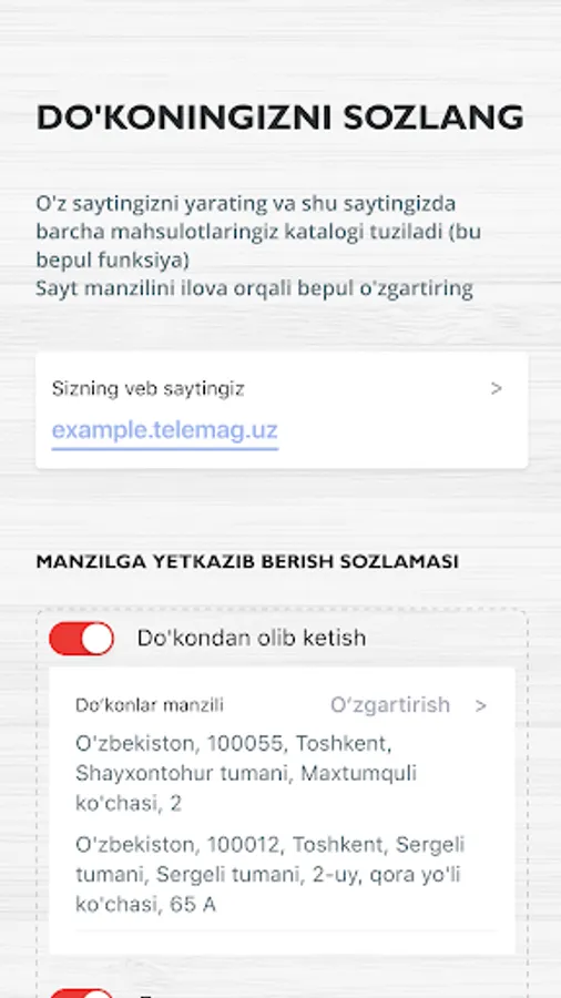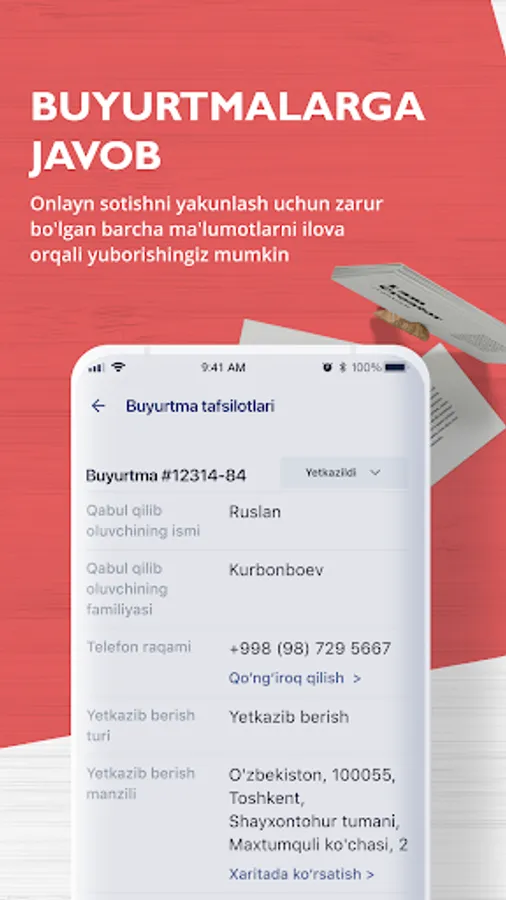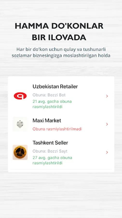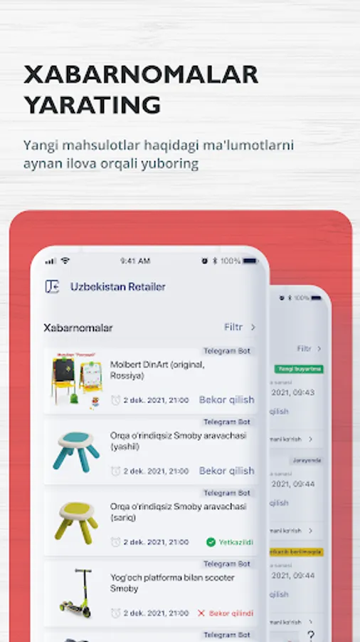 π² Ilovaning barcha funksiyalari savdoyingizni soddalashtirishga, sizga va xaridorga qulay bo'lishiga qaratilgan. Ko'p eshitgandan ko'ra bir marta ilovadan foydalanib ko'ring va onlayn savdoyingiz rivojlanib ketganidan zavqlaning!π