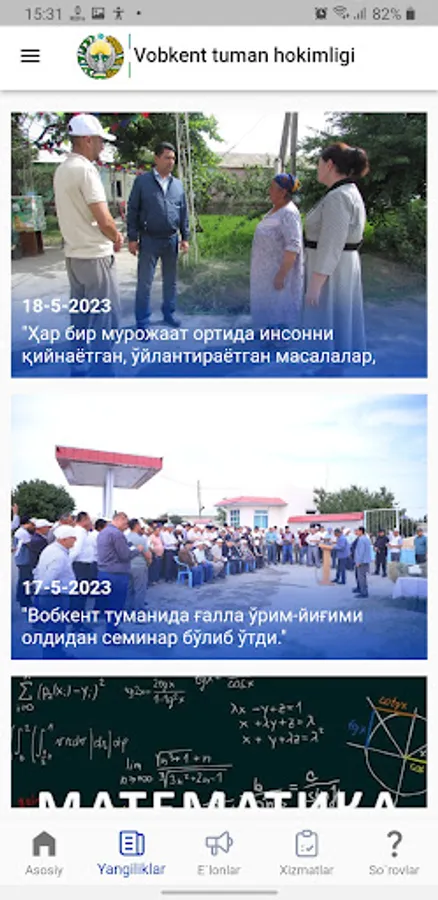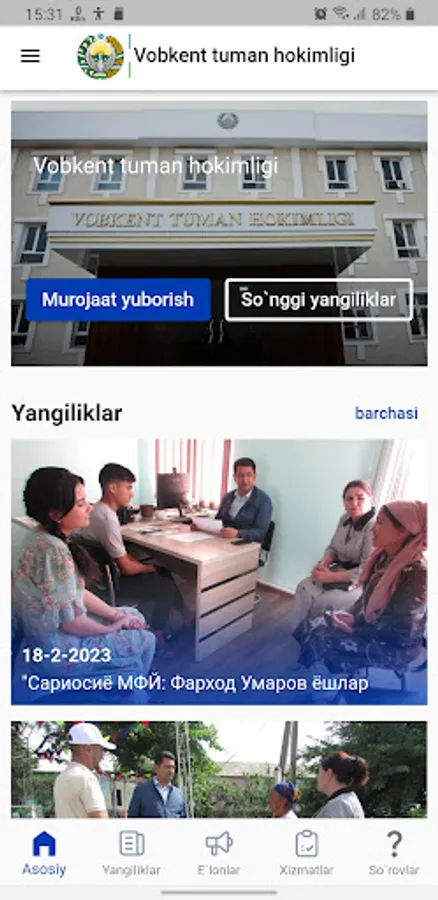 Vobkent tuman hokimligi mobil ilovasi yordamida siz tumanimizdagi yangiliklar va e`lonlarni birinchilardan bo`lib bilishingiz mumkin.