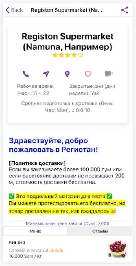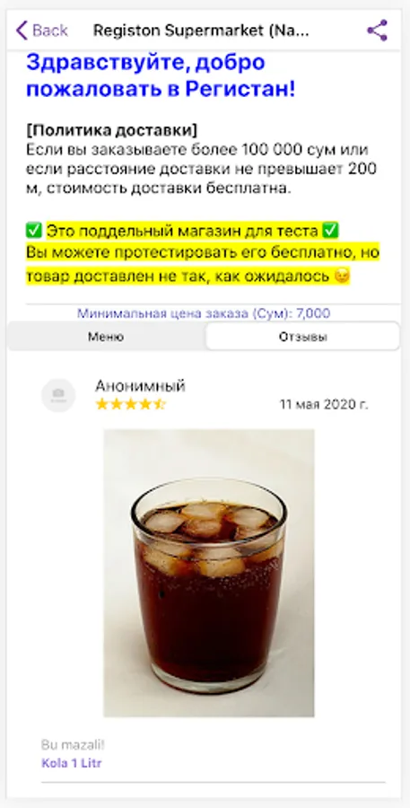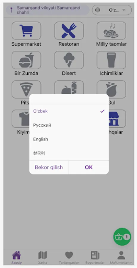 Onlayn buyurtma qilib oziq-ovqatni etkazib berish uchun foydalanishingiz mumkin. Bundan tashqari, siz Payme kabi onlayn to'lovlar orqali kartangizdan to'lashingiz mumkin.