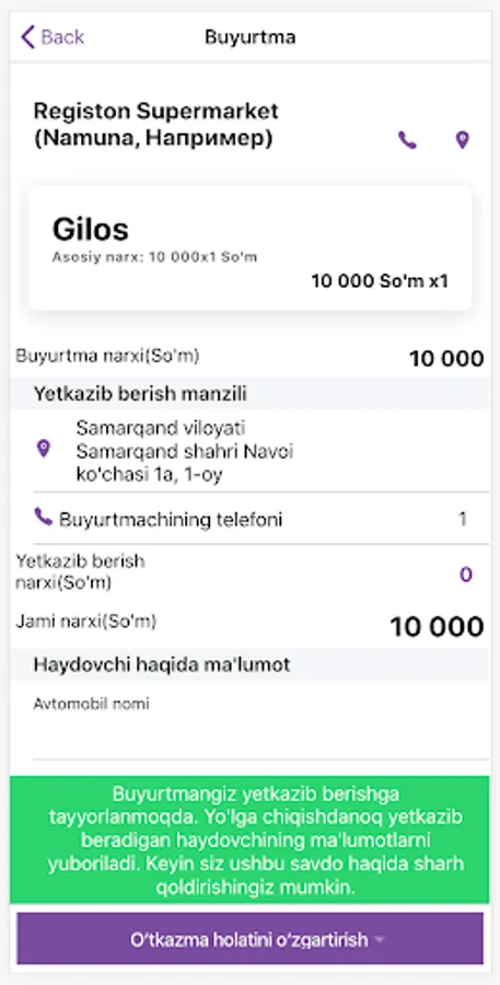 Sizdan mijozga yetkazib berish uchun bitta tugmani bosib, Yandex Taksi kabi yetkazib berish tizimini chaqiring.