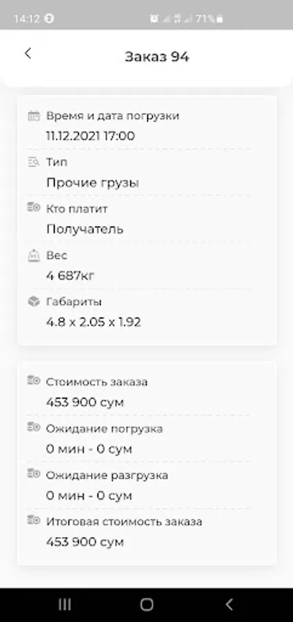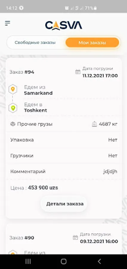 If your transport meets the requirements for the carriage of a specific cargo, you will instantly receive a notification about a new order.