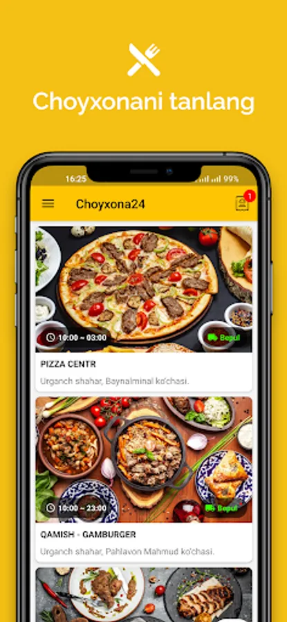Mazali ovqatlarni yaxshi ko‘radiganlar uchun choyxona va restoranlarning sevimli taomlarini yetkazib berish xizmati.
