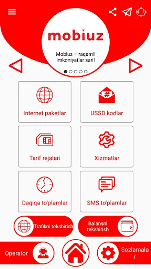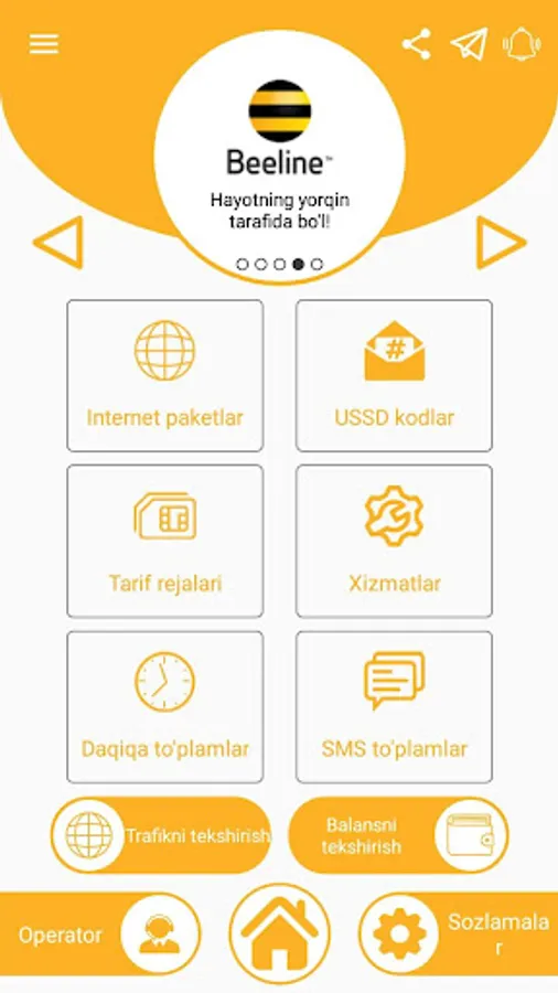 ✭ Internet, sms va ovozli paketlarni faollashtirish