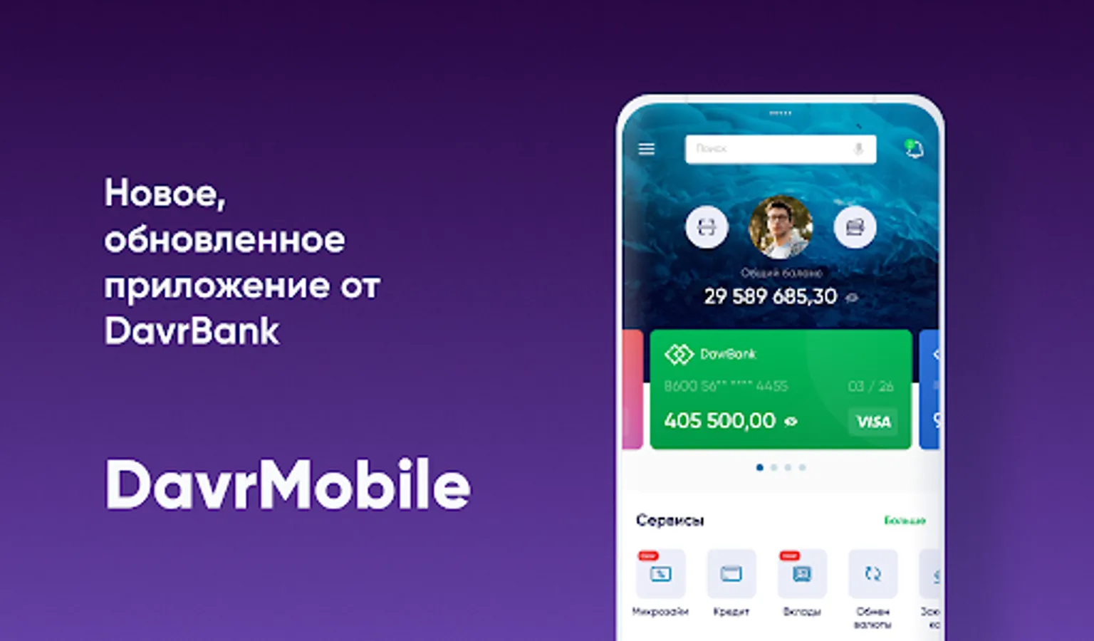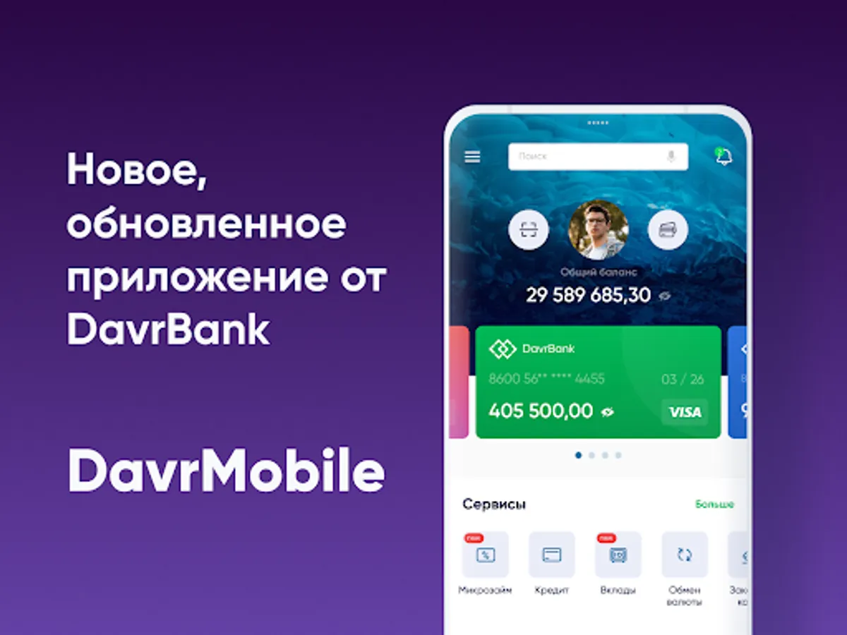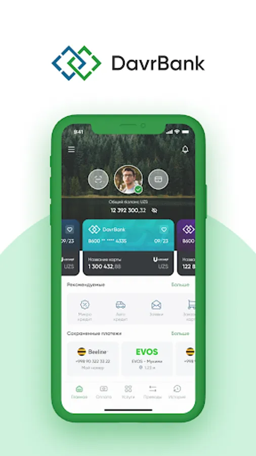 The new improved application of Davr Bank will allow you to instantly make any payments, monitor expenses, monitor cash receipts, open deposits and issue loans, transfer money from card to card and much more.