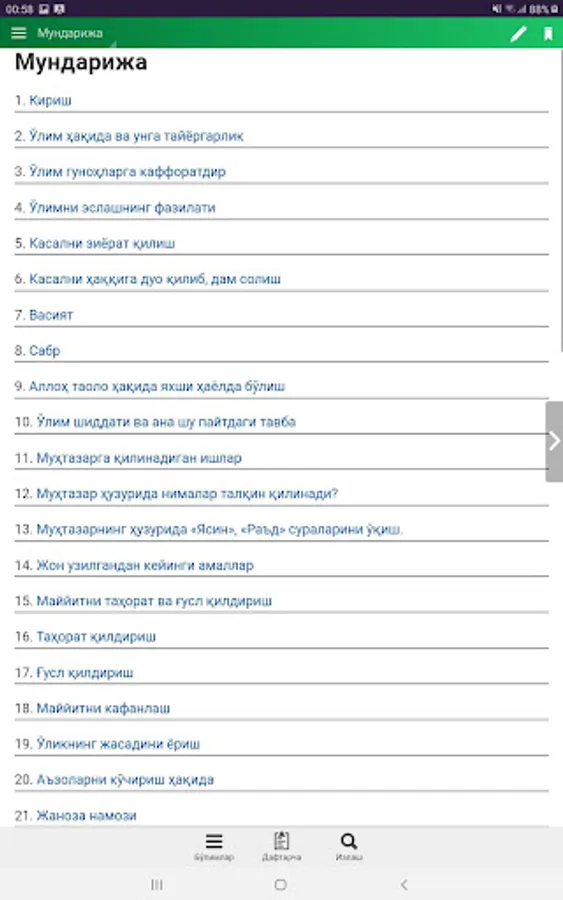 Муҳтарам ўқувчиларга бу мўжаз рисолани етказишдан мақсад аҳли мўминларга энг зарур бўлган масалаларни баён қилиб беришликдир. Булар ўлим тўшагила ётган кишига қилинадиган амаллар, вафотидан кейин қилинадиган амаллар, маййитни таҳорати ҳақида, маййитни ғусл қилдириш, кафанлаш, қабр ковлаш тартиби ва мурдани лаҳадга қўйиш масалаларидир. Чунки бу масалалар ҳар бир мўмин мусулмон фарзанди учун ҳаётий зарур масалалардир. Шунингдек, муқаддас динимиздаги энг кўп бидъати/хурофотлар аралашиб кетган амал/бу жаноза масалаларидир. Шу боисдан биз фиқҳ китобларидан ҳанафий мазҳабига асосланган масалаларни баҳоли қудрат ёритиб беришга ҳаракат қилдик. Ушбу рисола ўқувчи биродарларимизга манфаати етгудек бўлса, ниҳоятда мамнун бўлар эдик.