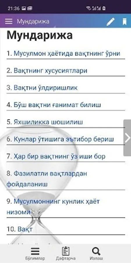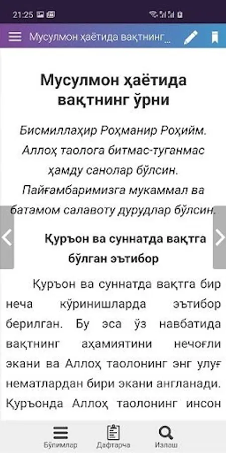 Vaqt qadri. Vaqt musulmonlar hayotida eng ahamiyatli masalalardan biridir. Vaqt hayot demakdir. O‘tayotgan har daqiqa-yu soniya, soat, kun, inson umrining xatosiz o‘lchovidir.