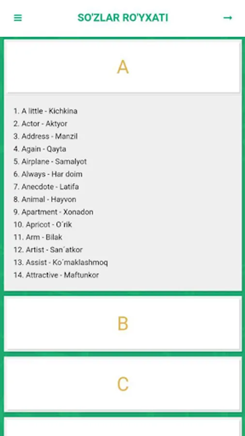 Ingliz tilidan so'z boyliklarini oshirmoqchi bo'lganlar uchun ajoyib mobil ilova.