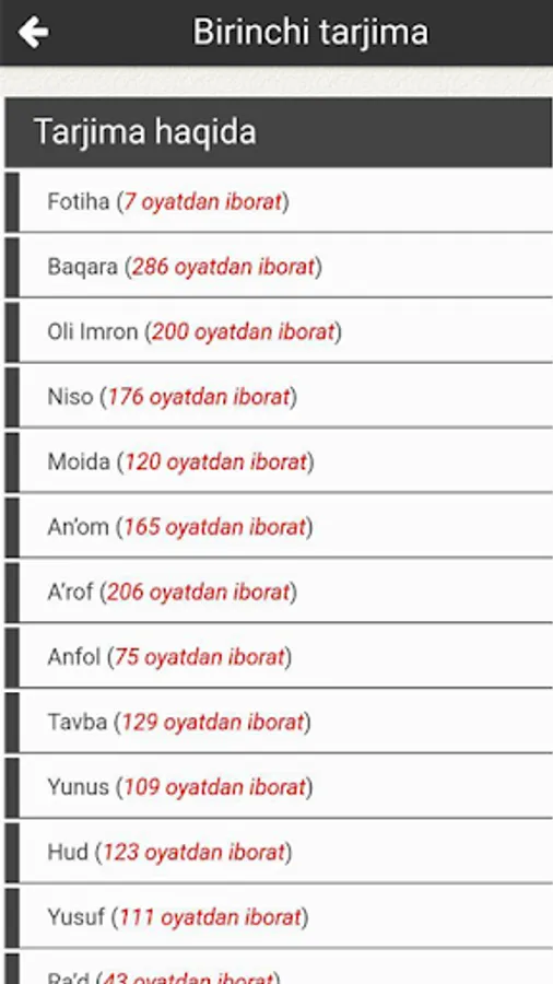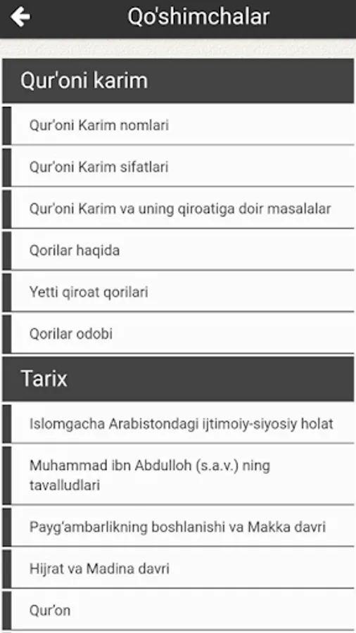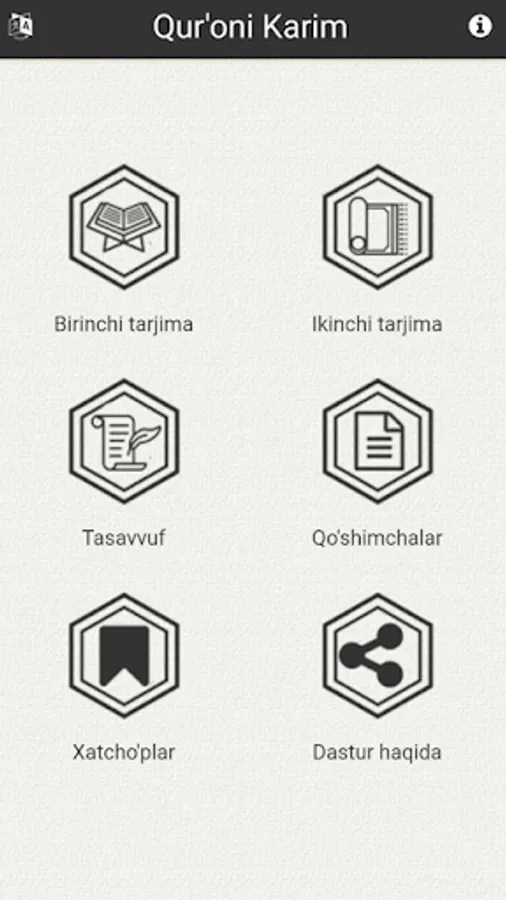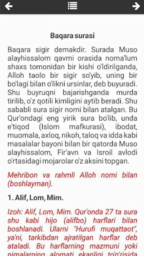 Ushbu kitobga ko'plab mobil ilovalardan farqli o'laroq Qur'oni Karimning O'zbek tilidagi ikki xil tarijimasi, suralar tarixi, oyatlarga izohlar. Qo'shimcha sifatida Islom Dini tarixi va Tasavvuf ilmi haqida ham to'laqonli ma'lumotlar kiritilgan.