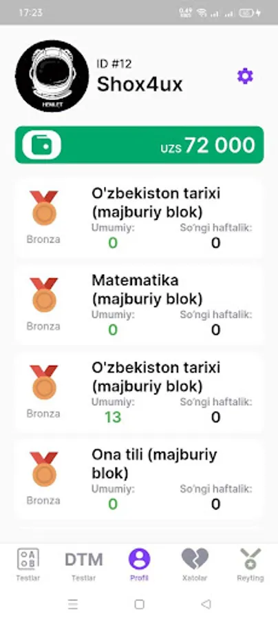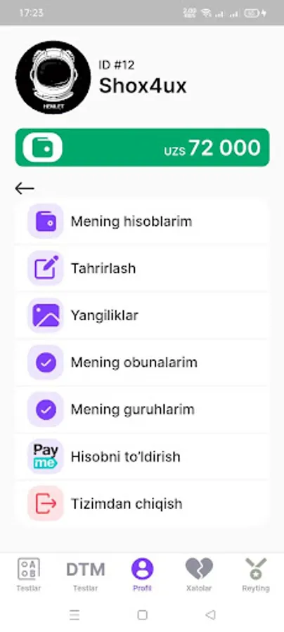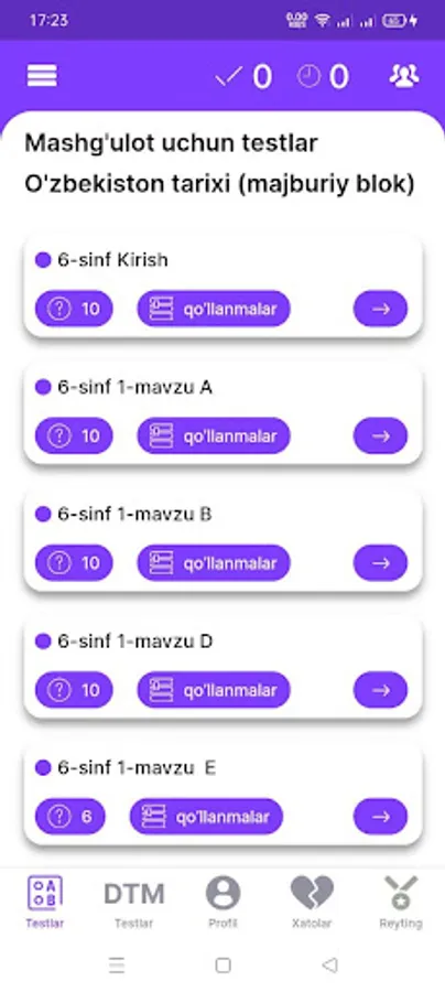 Ushbu ilovada siz foydalanuvchilar turli fanlardan uchun innovatsion usulda, qulay ta'lim olish imkoniyati yaratilgan. Mobil ilova pullik bo'lganligi tufayli mutaxassislarimiz tomonidan tinimsiz yangi o'zgarishlarni amalga oshirilib boriladi. Siz ushbu ilovada OTM kirish uchun majburiy fanlar hisoblangan O'zbekiston tarixi, Matematika, ona tili fanlari va asosiy blok sifatida Tarix, Ona tili va Adabiyot, Huquq, Matematika, Geografiya, Biology, Kimyo, Fizika, Ingliz tili, Rus tili kabi fanlardan test jamlanmalari mavjud.