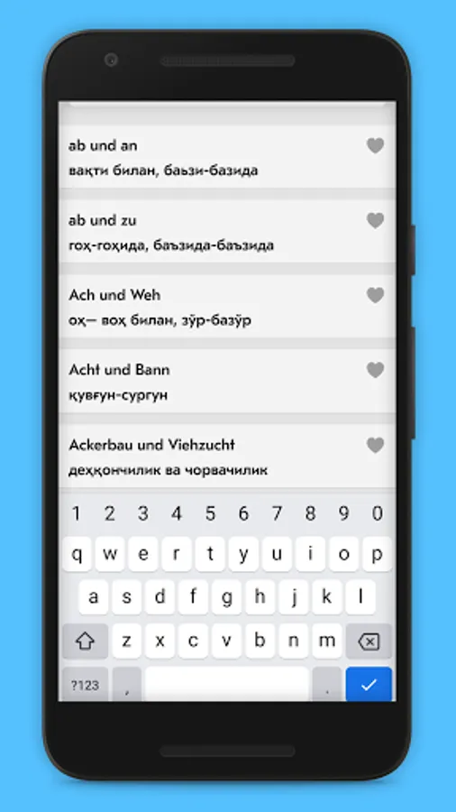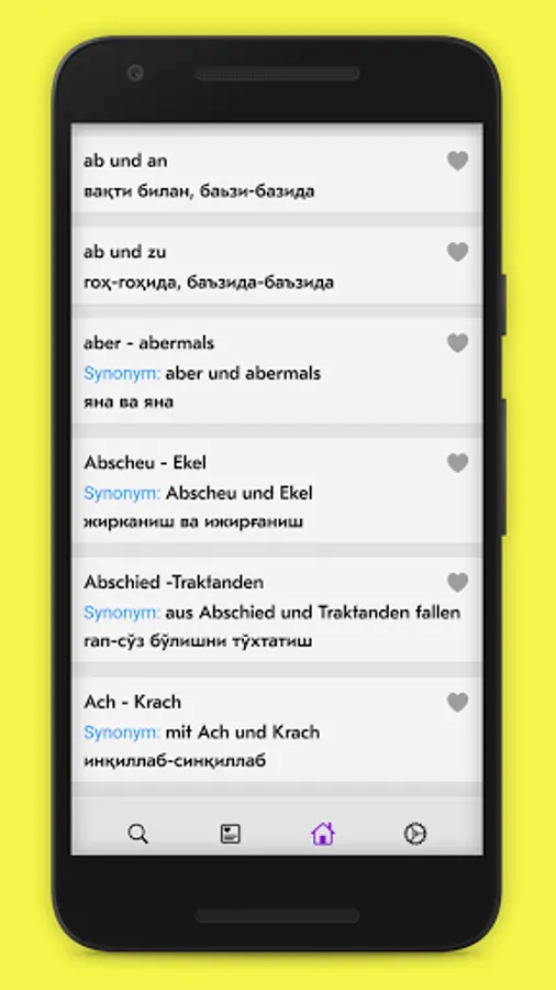This German-Uzbek electronic dictionary of twin formulas is valuable as the first work that was created in the system of "twin formulas" of the German-Uzbek language pair. It contains 1,000 twin formulas, each with an Uzbek translation. The dictionary is based on the scientific knowledge of linguists and lexicographical macro and microstructure principles. It can be used by students, masters and doctoral students as well as professors and lecturers in the teaching of lexicology, lexicography, translation studies and comparative linguistics.