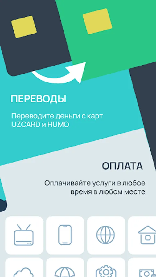 Ilova yordamida tovar va xizmatlarga to’lov qilish va kartadan kartaga pul o’tkazish uchun - bank kartangizni SMS-xabarnoma xizmatiga ulang. Xizmat har qanday bank yoki infokioskda bepul yoqiladi.