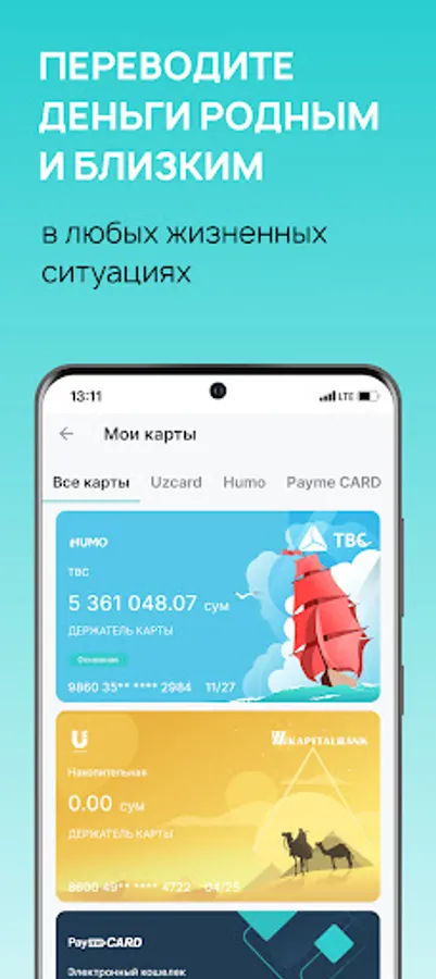 Connect the SMS notification service to the card. The service is connected free of charge at any bank (HUMO) or information kiosk (Uzcard). Without connecting the SMS informing service, it is impossible to transfer money from card to card in the application, pay for services and make purchases online.