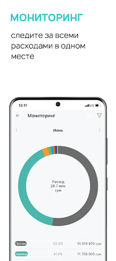 Analytics to control expenses. The application categorizes payments and shows graphs of expenses and receipts.